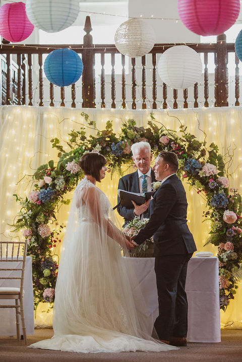 'This gorgeous hotel has a wonderful oak balcony which can be transformed into a floral dream.'
